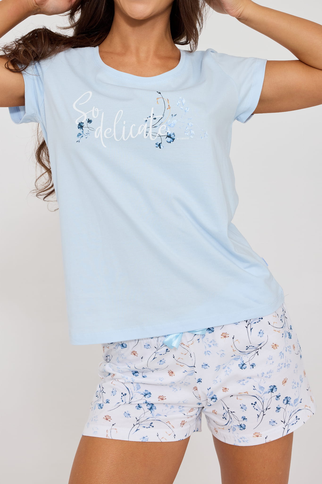 Piżama damska trzyczęściowa Cornette model 466/344 "So Delicate" w błękitnym kolorze.