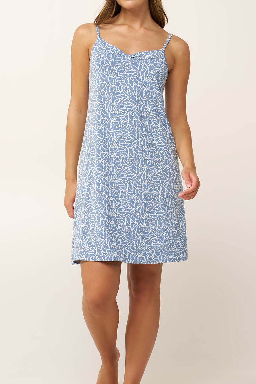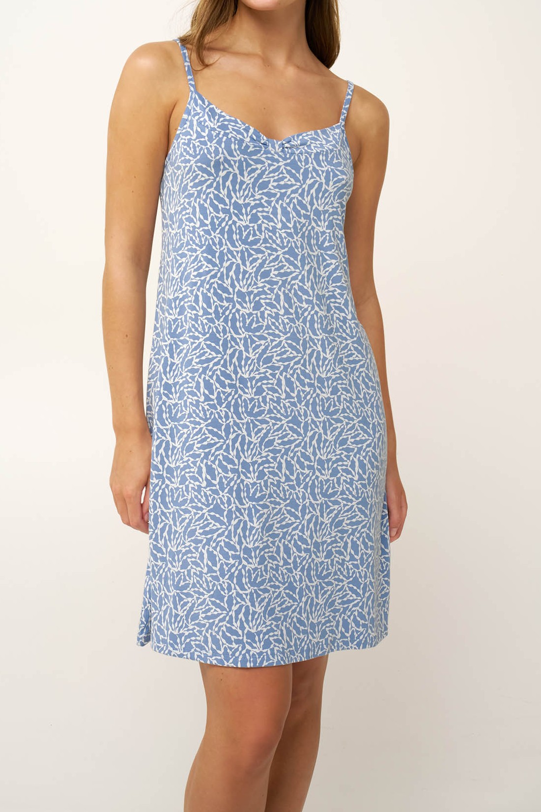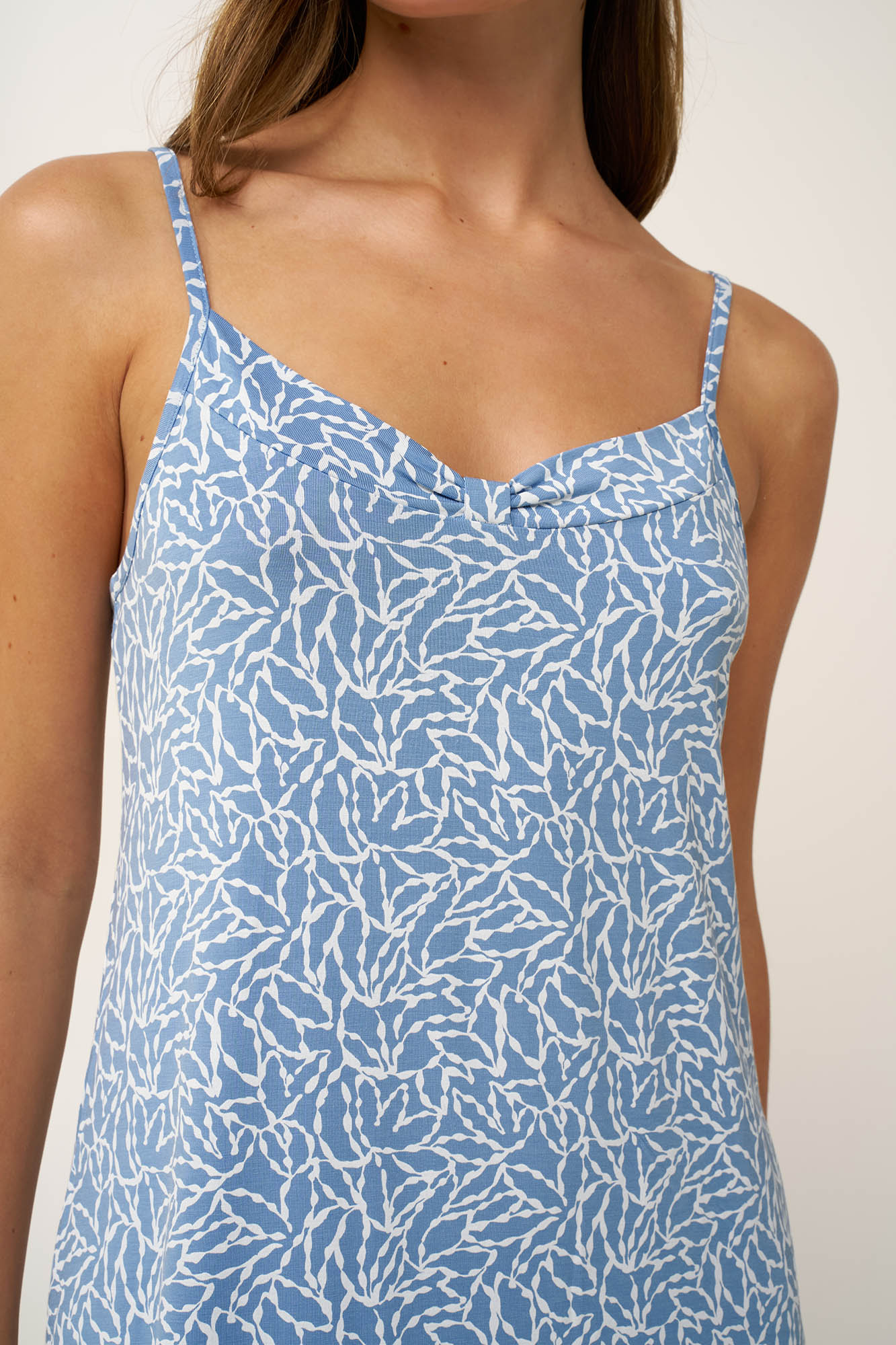 Koszula nocna na ramiączka, niebieska z ornamentami. Długość koszuli: przed kolana
