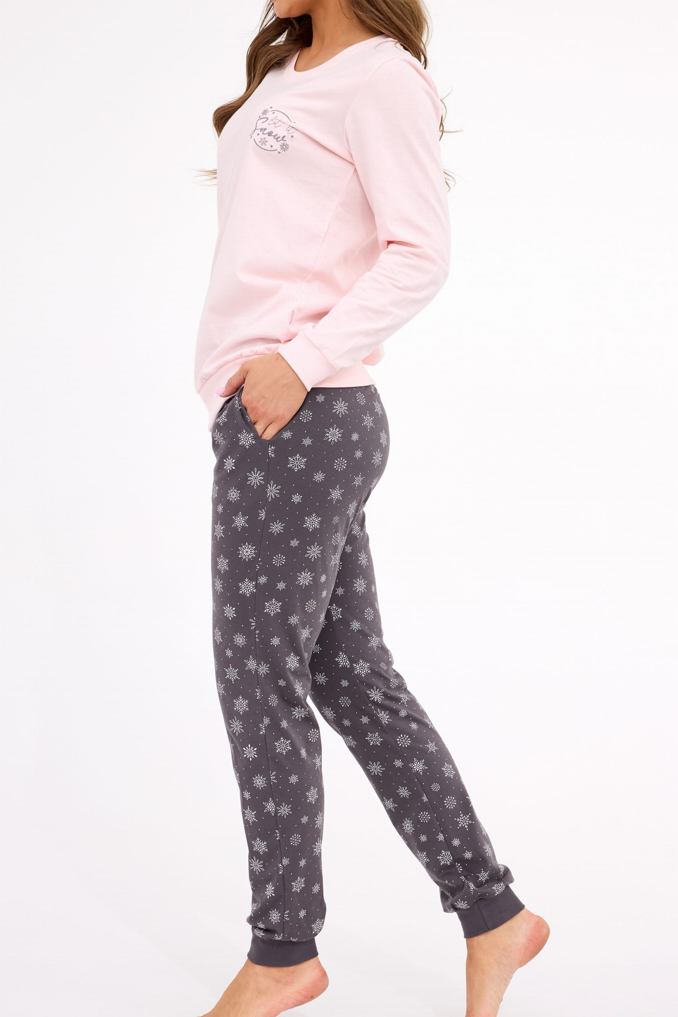 Bawełniana piżama damska z długim rękawem i długimi spodniami Cornette 163/461 Snow