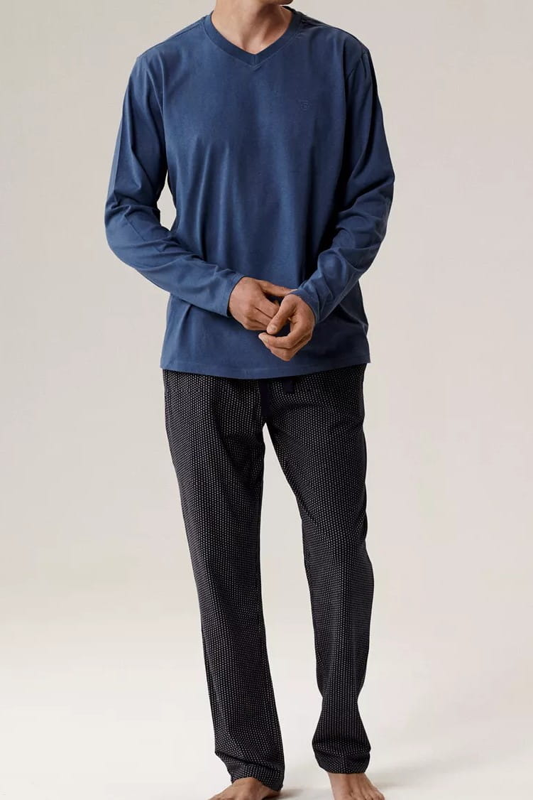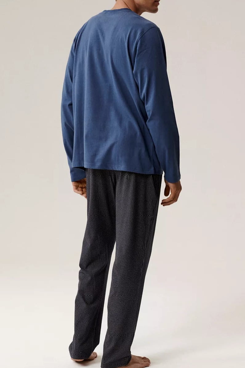 Piżama męska z długim rękawem firmy Atlantic model NMP-389 w kolorze niebieskim.