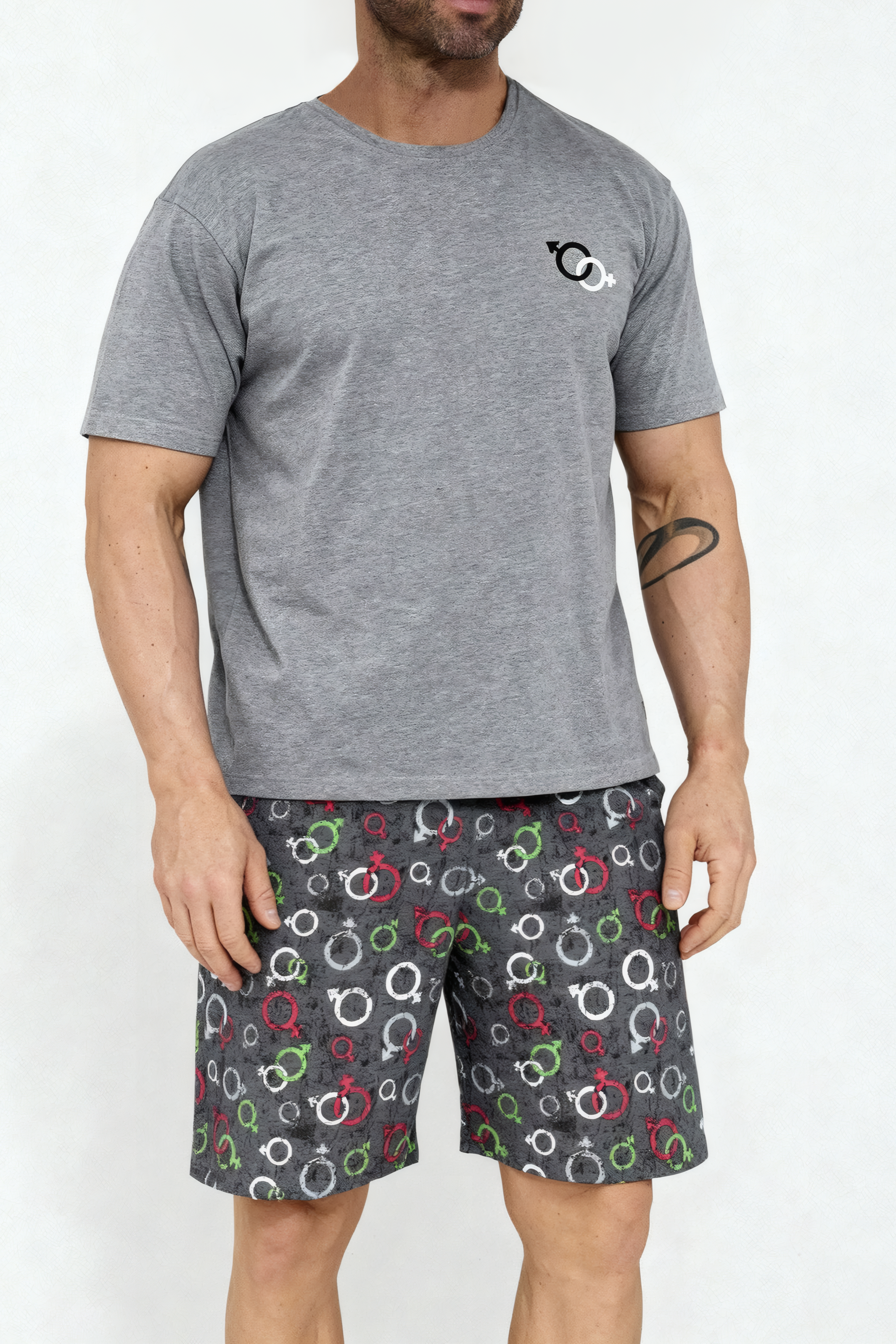 Piżama męska z krótkimi spodniami i z krótkim rękawem Cornette 326/206 "Love Symbols 2" w kolorze szarym.