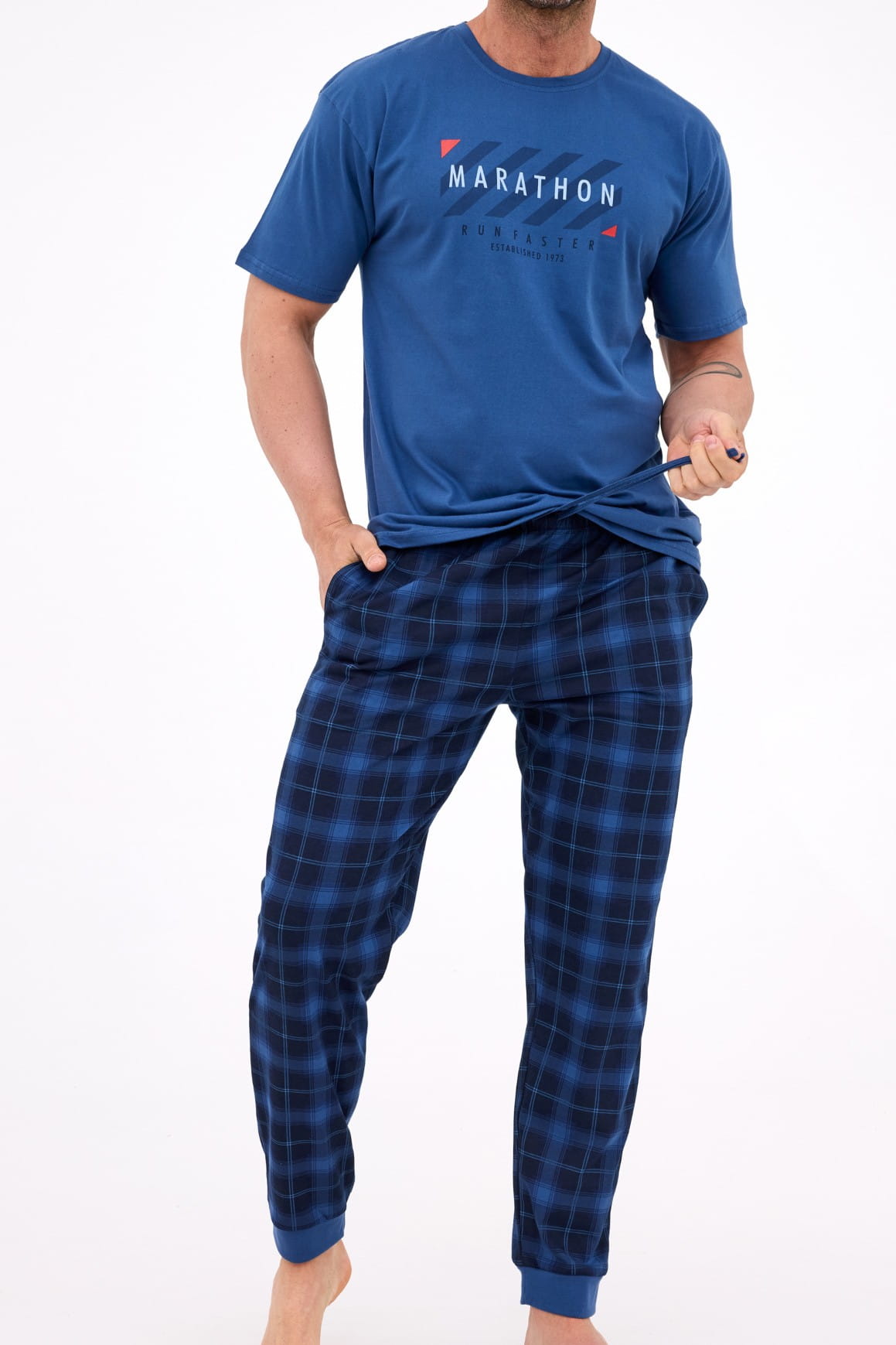 Piżama męska z długimi spodniami i z krótkim rękawem 462/302 Marathon 2 w kolorze granatowym.
